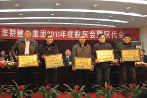 在全国人大政协两会之际,3月5日上午,集团召开了2011年度股东会暨职代会。会议由胡从亮总经理主持,许金华董事长和傅强主席分别作了行政工作报告和监事会工作报告。市住建局副局长王守祥、市总工会副主席张峰应邀到会并讲话。非职工代表的集团公司领导、部门负责人、分子公司班子成员、在建的统管工程项目经理和优秀技术人员代表列席了会议。会议还对2010年度先进单位、先进集体、先进项目部和先进个人进行了表彰。